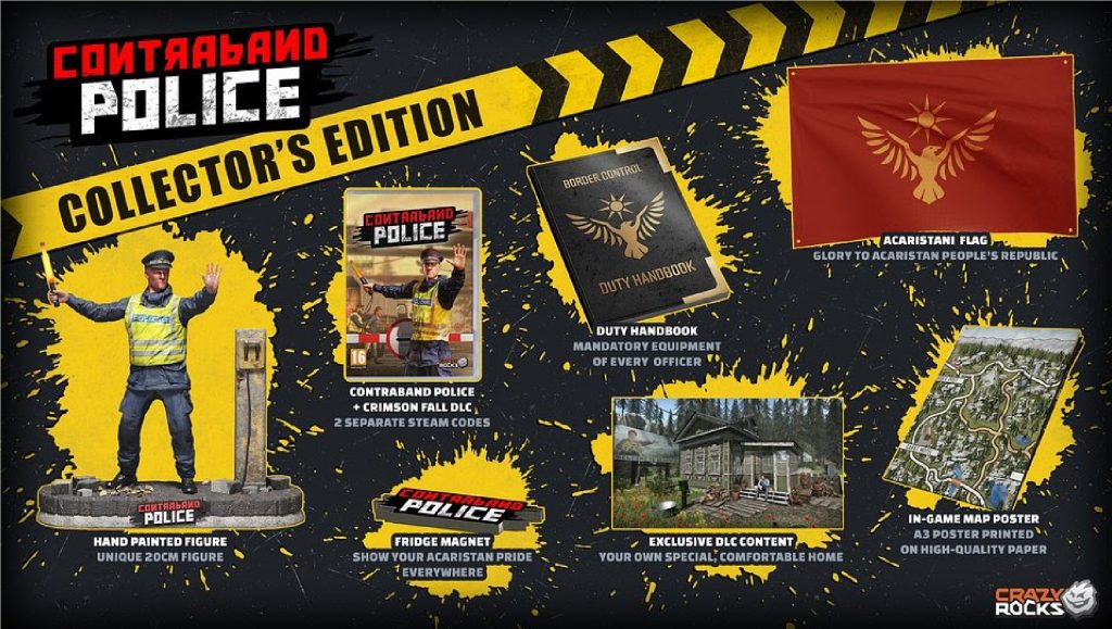 | ● Hand-painted 20 cm figure ● Smuggler’s crate-shaped box ● In-game map poster ● Acaristani flag ● Duty handbook ● Game logo magnet ● Exclusive DLC content ● Base PC (Steam) version of the game with Crimson Fall DLC |