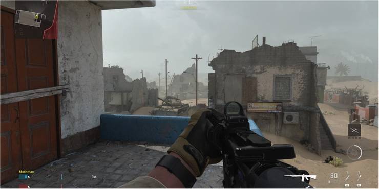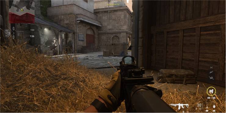 Al Bagra Fortress has a ton of doorways. You’ll find yourself ramming open door after door as you move from one area of this Modern Warfare 2 map to another. That makes camping almost a necessity here. An unconventional spot that will catch others off guard is in one of the two stables.
