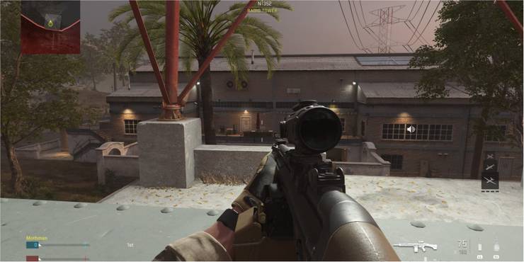 El Asila is a map with a large building in the center, surrounded by smaller points of interest. Atop a hill is one of those points of interest. The Radio Tower gives a vantage point of its entire side of the map. There’s the tower itself, a transformer, and going prone with the high ground that provide cover.