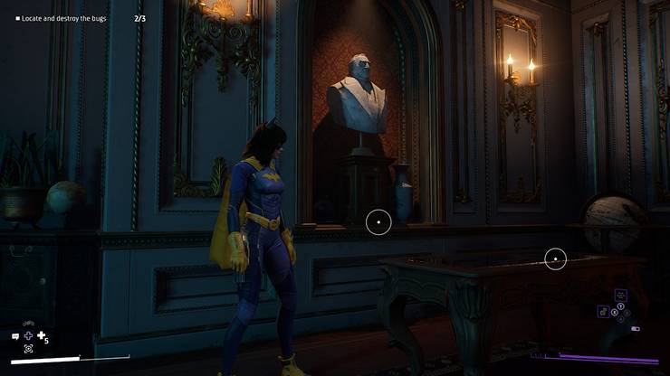 The final bug is on the other side of the room, closer to the entrance. If you look at the walls, you’ll find a sculpture of the Penguin. AR scan the bust that it’s sitting on top of, and the bug will be revealed. As always, interact with the object to destroy the bug.
