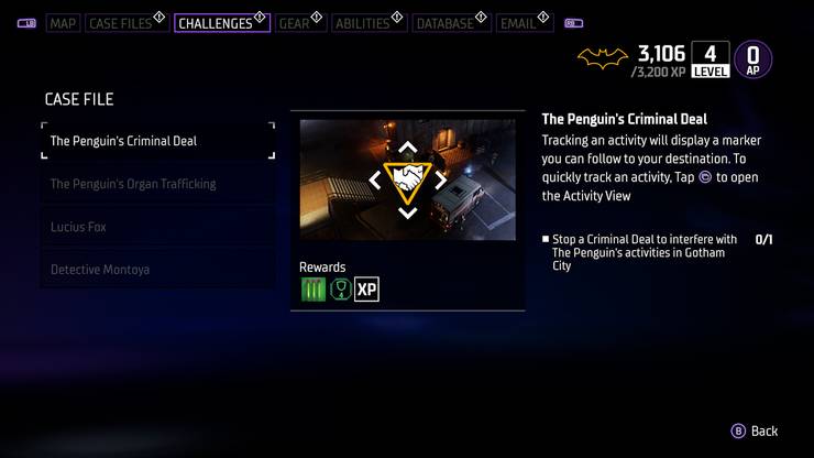 You’ll need to disrupt a number of his criminal activities before you’re allowed to return, beat up his bodyguards again, and ask for help. At this point, Penguin will suspiciously turn on music and alert you to the presence of bugs that are listening in on your conversation. You’ll need to find the three bugs in Penguin’s office to get him talking.
