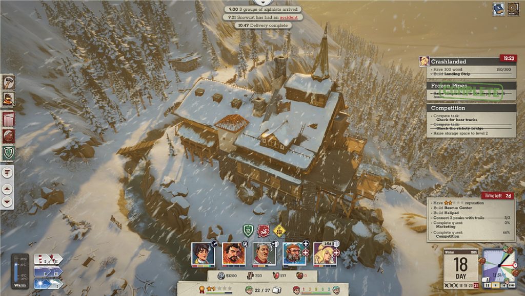 But the gameplay isn’t just closed within the lodge’s wooden walls. Players can chart their own hiking routes, taking into account scenic viewpoints and dangerous passes. A specialized task system allows you to organize rescue operations, transport supplies, and uncover new corners of the breathtaking alpine landscape.
