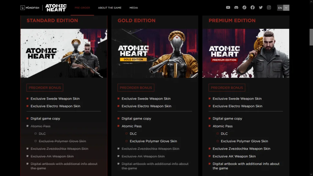 There are 3 main editions of Atomic Heart available for preorder. One additional Limited Edition is exclusive to the Focus Entertainment Store.