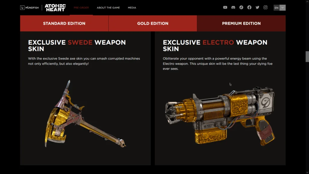 The game also has two preorder bonuses, Exclusive Swede and Electro Weapon Skins. Both of them seem to be cosmetic only and don’t provide any gameplay benefit, except making your weapon look cool.