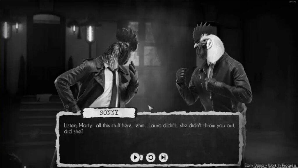 Finally, Chicken Police: Into The Hive is a gorgeous game to look at. Much like the first one, it oozes the atmosphere and emulates that Noir film aesthetic with ease. The characters, their outfits, and the environment, everything is full of small details to appreciate.
