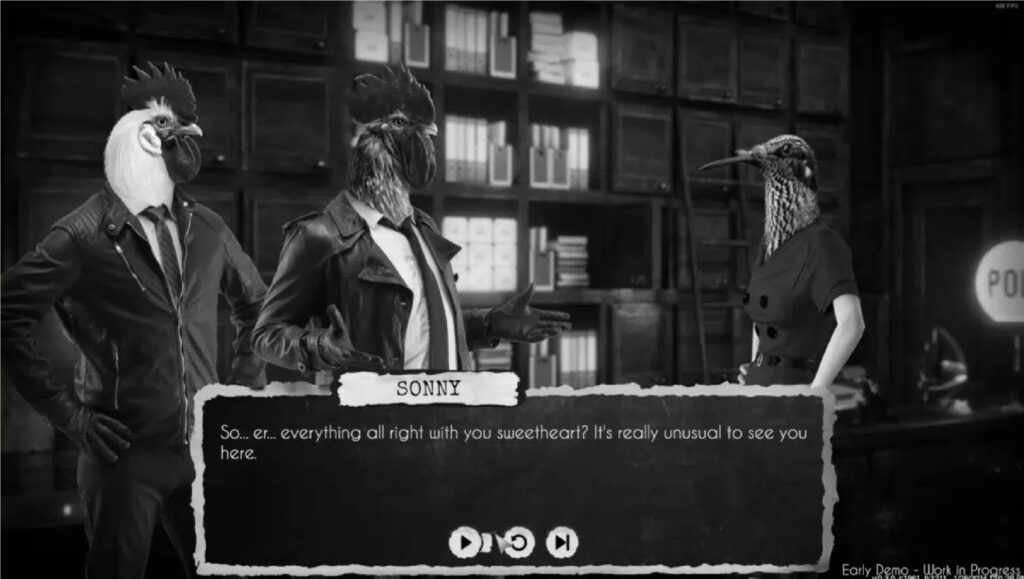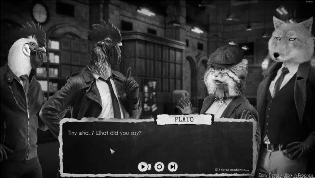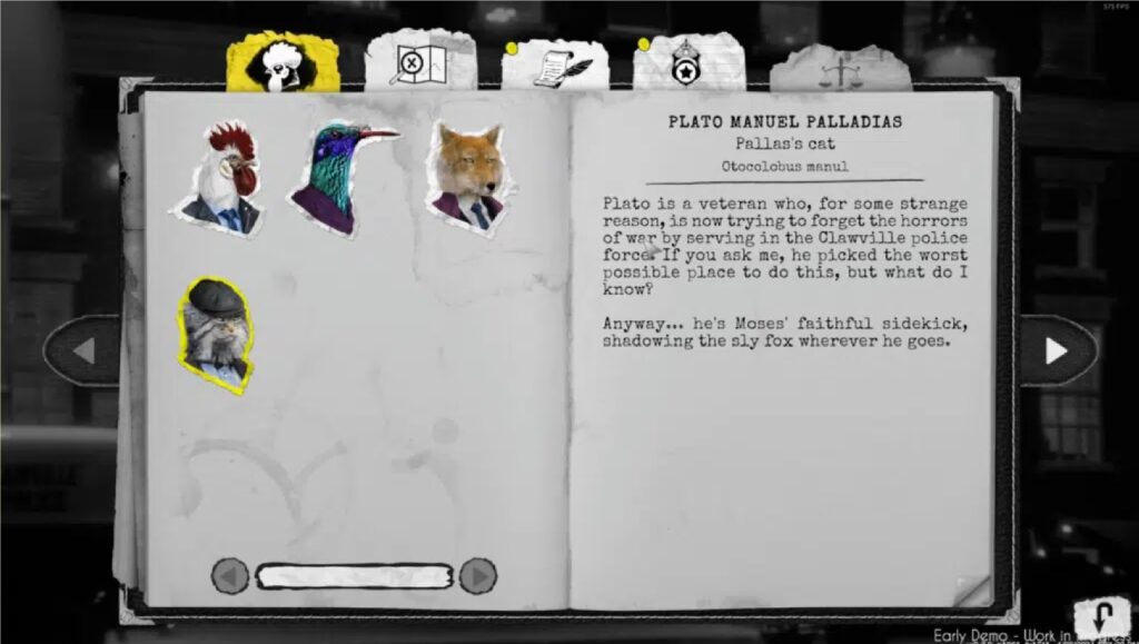 I visited multiple locations, all with new points of interest and characters with extensive dialogue. The best part? Every line is fully voice-acted, and it’s basically like you’re watching a Noir drama, with an anthropomorphic cast of course. You go back and forth between characters when you have new information, standard point-and-click stuff. The story is very interesting though, and I met a bunch of memorable characters in an hour of gameplay.