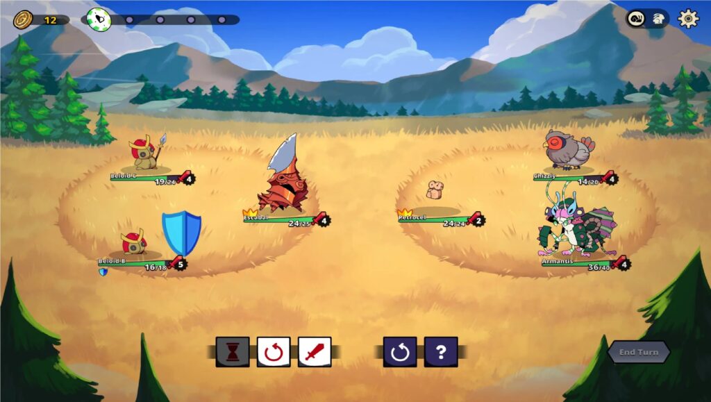 As you traverse biomes in Dicefolk, you’ll stumble across an array of unique areas. Some let you nab a new chimera for your team, others are healing spots and shops with items for purchase. There’s also spots with cursed items, spots with blessed items, and other surprises along the way. The most common area you’ll travel through is a battle spot – and it’s in these arenas that Dicefolk makes its strongest impression.