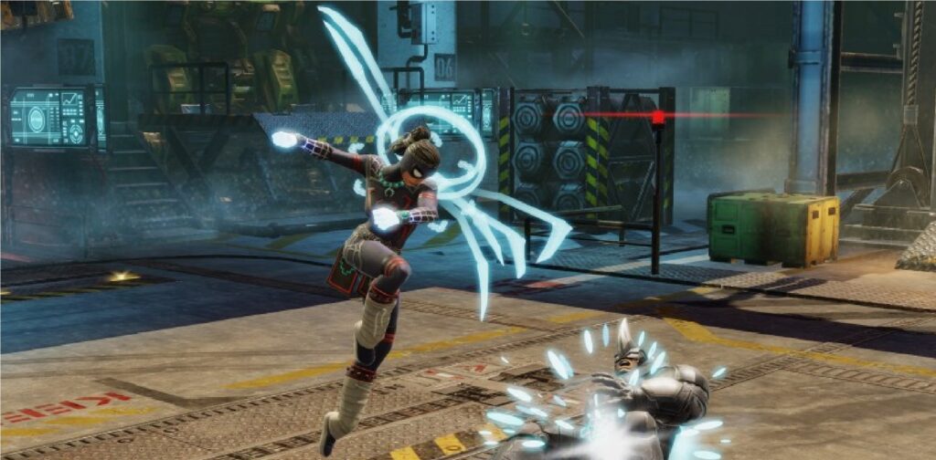 “We’ve never had a Spider-Verse Protector character, and so playing with the idea of [Na’ashjeii Asdzáá] being a benevolent, protector to humanity, we wanted Spider-Weaver to be this unique character,” he says. “The gameplay mechanics are going to be about her being able to heal and buff and put defensive barriers on the team, but also reduce incoming attacks. She basically destroys enemy teams’ accuracy, so they’re going to be missing. There’s a novel mechanic there where people will just not be able to hit her and her team, and then the rest of her team are going to be able to do damage and apply a lot of debuffs that are going to be very sticky in Cosmic Crucible to the enemy teams.”