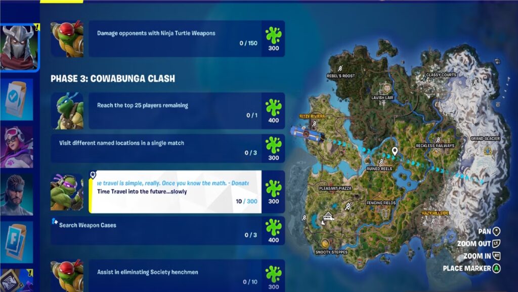 Fortnite is hosting a Teenage Mutant Ninja Turtles event until February 27. During this time, players have the opportunity to complete a mini, TMNT-inspired Battle Pass. Eight quests are released every three days until the end of the event. As players complete these quests, the Splinter Assignment Quests, they’ll unlock Ooze, which is the currency that’s used to claim rewards in the Cowabunga event pass.