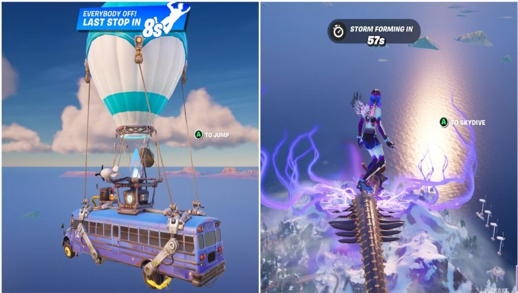 To quickly get through this quest without being eliminated, players should stay on the Battle Bus until it reaches the end of its route and forces them off. Then, they should open their glider and stay in the air as long as they can – this makes it easier for players to stay alive longer.