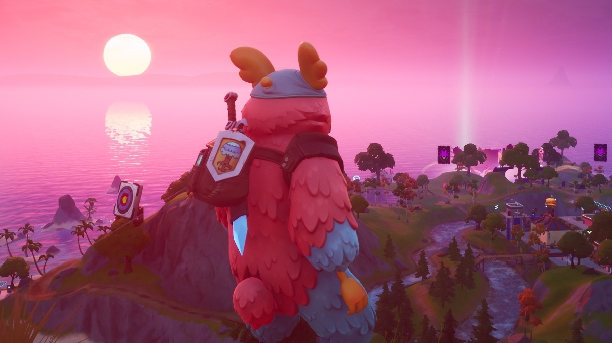 When it’s not hosting live events, you and your friends can use Party Royale however you want, with gentle nudges here and there to interact in mini-games or stare at enormous screens pumping out Fortnite music and imagery. It’s very early days, but already there’s the concert stadium area where Diplo appeared, and a separate open-air movie screen. There’s also a pirate ship, a Mario Kart-style race track, and quiet beaches just to stand and watch the aurorae rippling through Fortnite’s skies.