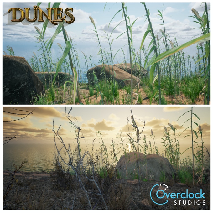 Weather System – In Dunes weather is generated by a systematic code providing a natural, dynamic, interpretation of realistic weather systems. Clear skies, foggy grounds, in-climate weather, and even harsh sandstorms help to ensure that each day/night cycle on the island feels unique.