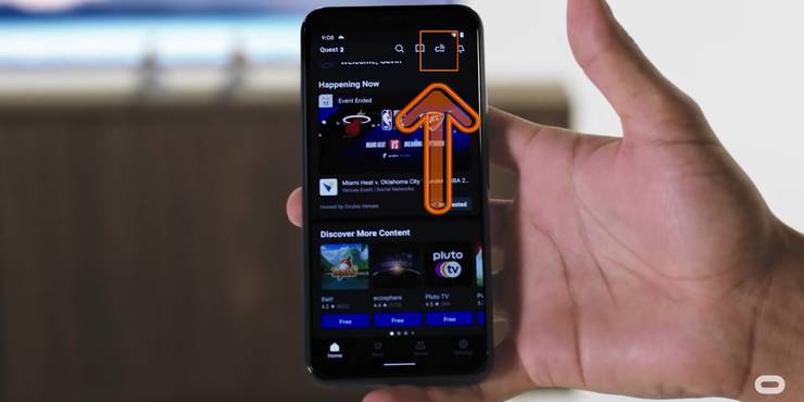 4. In the Oculus App, locate the rectangle with waves coming from it in the upper right-hand corner