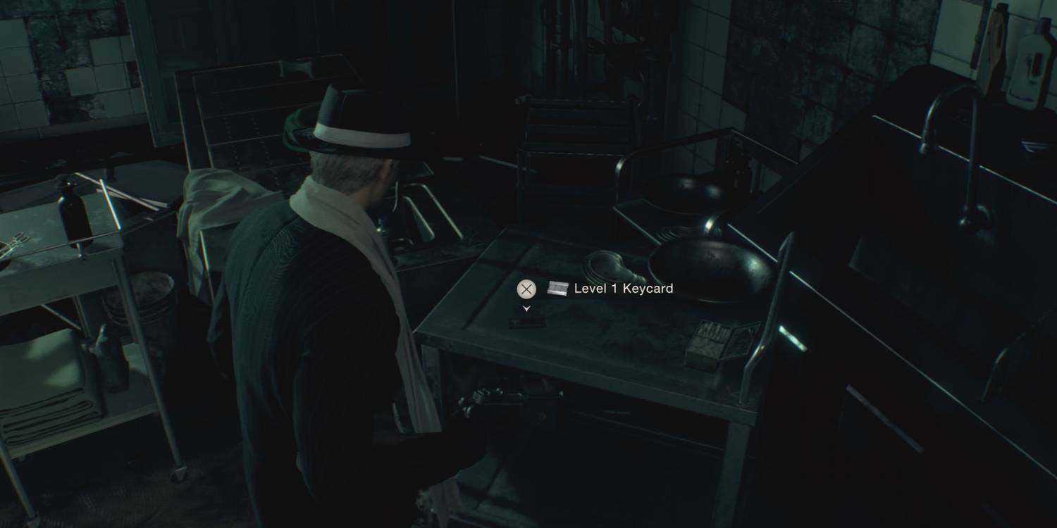 Once the power has been turned on, Leon will be able to interact with the control panel in the Dissection room to unlock the room directly north of it. Inside, at the northmost wall, the Level 1 Keycard can be found.