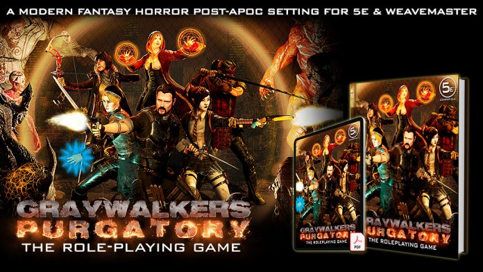 The GRAYWALKERS PURGATORY RPG is a game setting that is a stylish and dark modern horror fantasy set in a supernatural post-apocalyptic future world wherein parts of Heaven and Hell had merged with Earth. This was brought about by a cataclysmic event called the Rupture which caused the destruction of most of the world.