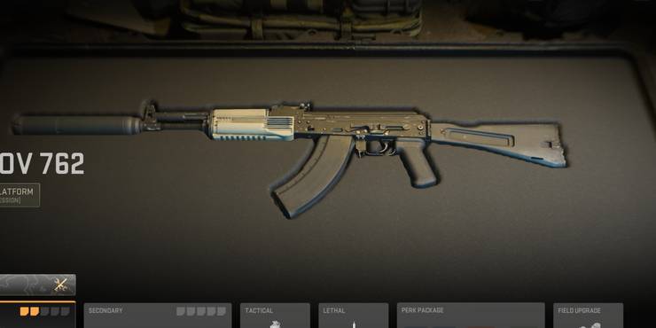 The AK is back and better than ever. We’ve been running this in a lightweight, fast-paced loadout with a silencer, and it’s a lot of fun. You won’t have the same sort of recoil control at range as you get with the M4, but it’s the classic debate between damage and accuracy. With the Kastov, you’ll kill most enemies in two or three bullets at close range. Hipfire works like a charm, also.