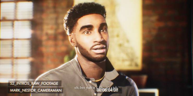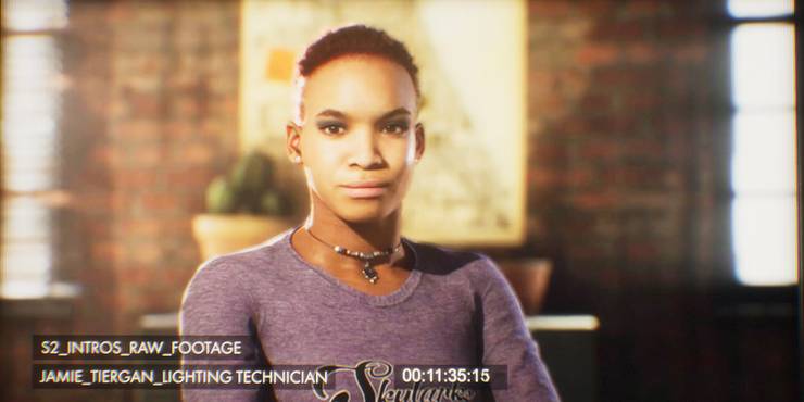 Jamie, the snide, short-haired Black girl, is the key grip for the crew, responsible for rigging all the cameras and lighting for Lonnit Entertainment films. Fans of the Anthology have been excited for her inclusion because she’s Supermassive’s first confirmed LGBT+ character, and if you play the game a certain way, she’s rather interested in Erin, another member of the crew.