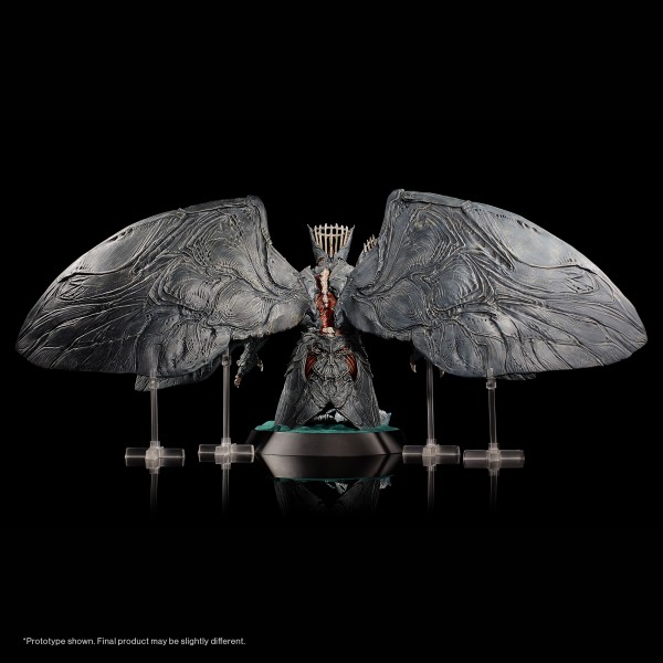Manufactured by Numskull Designs, who has previously crafted Destiny statues of Eris Morn, Cayde-6, and others, this collectable version of the Sister of Shapes stands 11.5 inches tall and sports an equally imposing wingspan of 26 inches. The intricately detailed and hand-painted Savathûn sits atop a base (complete with acolyte soldier) with plastic wing supports.