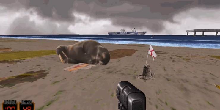On New Year’s Eve, the UK found itself a new celebrity in the form of Thor the Walrus. Thor’s appearance in Scarborough saw him not only cancel the planned fireworks show but also ruin the innocence of British children ever when he was spotted rubbing one out on the docks. Well, you can now celebrate that glorious moment in Duke Smoochem 3D, a parody version of Duke Nukem 3D that has regularly been updated to reflect the strange going-ons in the UK.