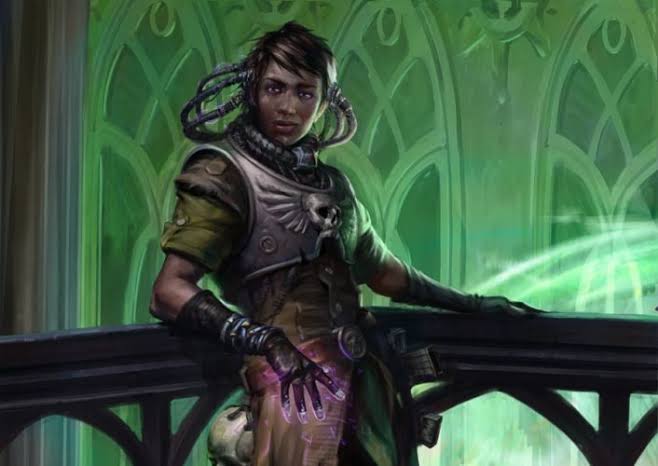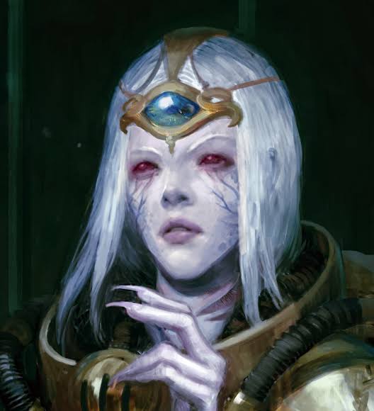 Cassia Orsellio is a young Navigator from a Navis Nobilite House in the Koronus Expanse, with a unique mutation and a third eye that allows her to navigate through the warp for the Rogue Trader’s voidship. She is a powerful being with formidable powers, including the ability to instill fear in enemies and boost the strength of her allies.
